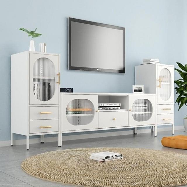 免運 北歐鐵藝電視櫃客廳茶幾組閤長虹玻璃落地靠墻簡約現代輕奢小戶型