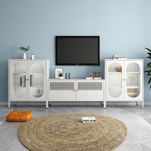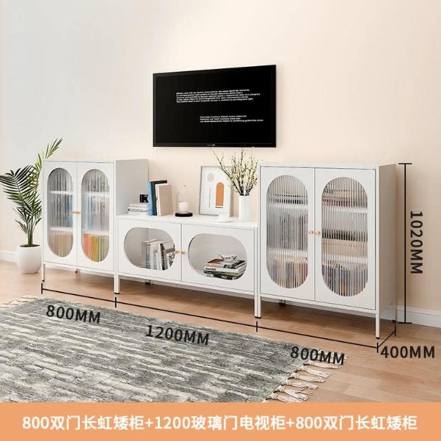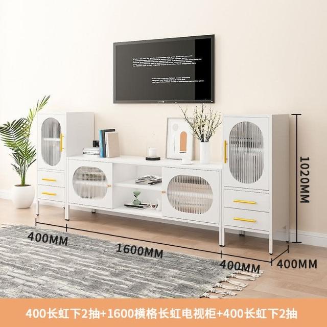 免運 北歐鐵藝電視櫃客廳茶幾組閤長虹玻璃落地靠墻簡約現代輕奢小戶型