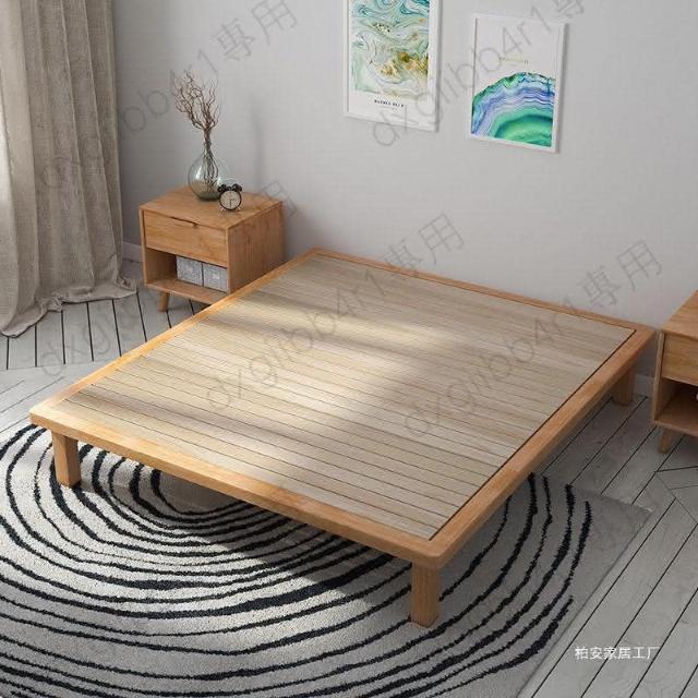 廠傢直銷 全實木無床頭實木床榻榻米矮床1.2/1.5/1.8米單雙人床床架無靠背