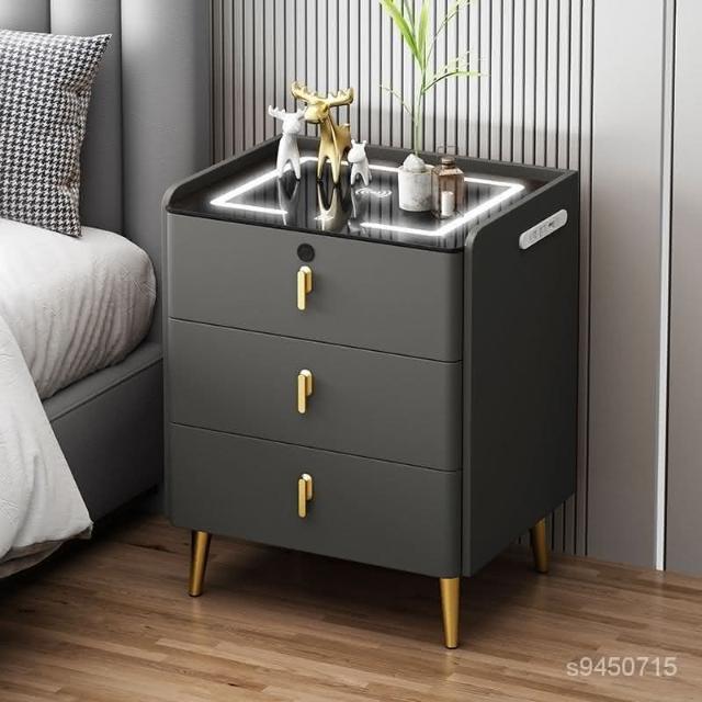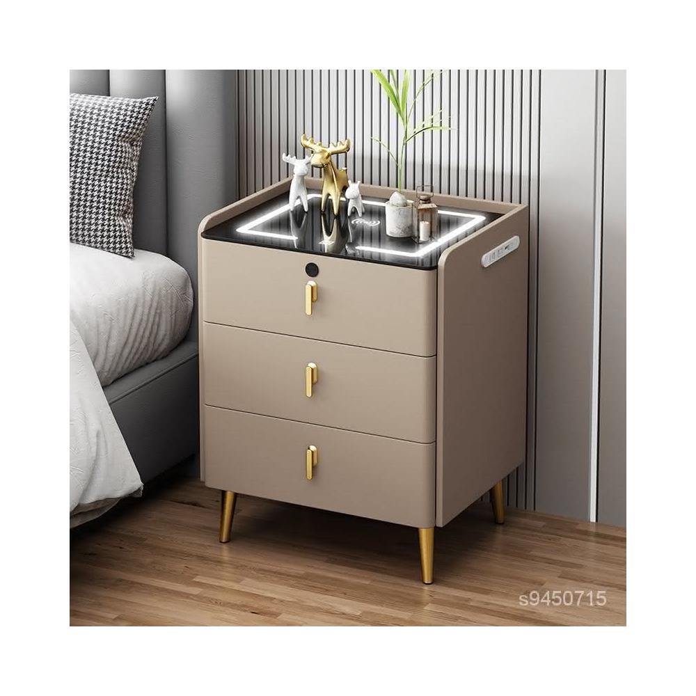 免運到府 整裝發貨 全實木智能床頭櫃 多功能床頭櫃 三層整裝無綫充電帶燈床頭櫃 床頭櫃 床邊櫃 收納櫃 櫃子 櫃