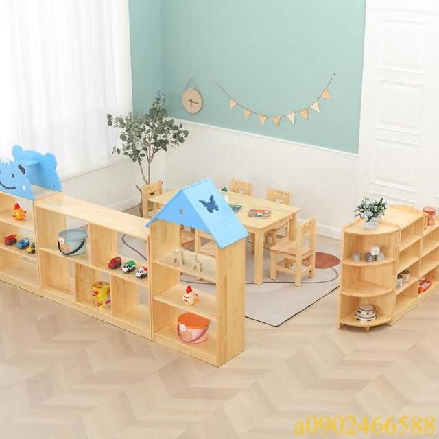 幼兒園實木玩具櫃 兒童收納儲物架 原木書包柜子 鞋櫃書架區角櫃組合