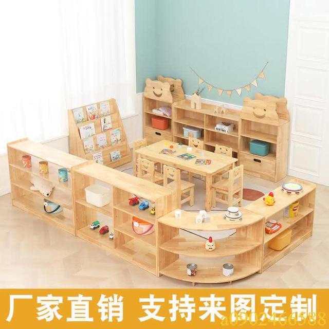 幼兒園實木玩具櫃 兒童收納儲物架 原木書包柜子 鞋櫃書架區角櫃組合
