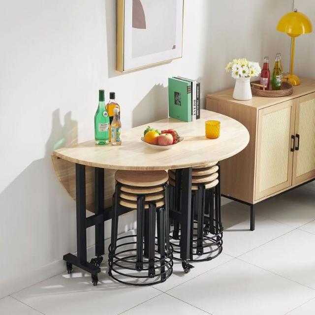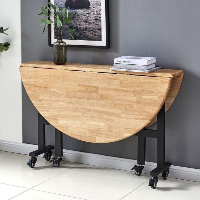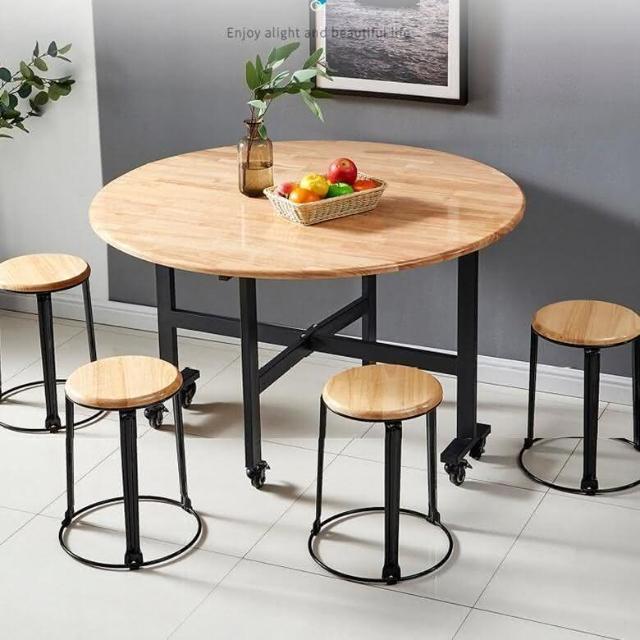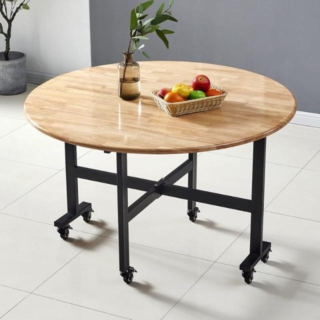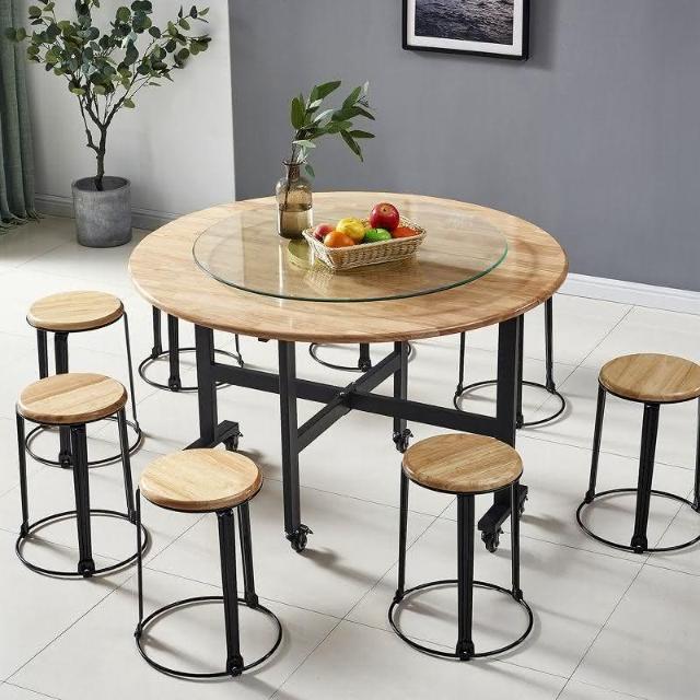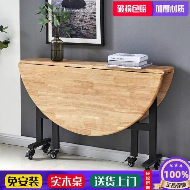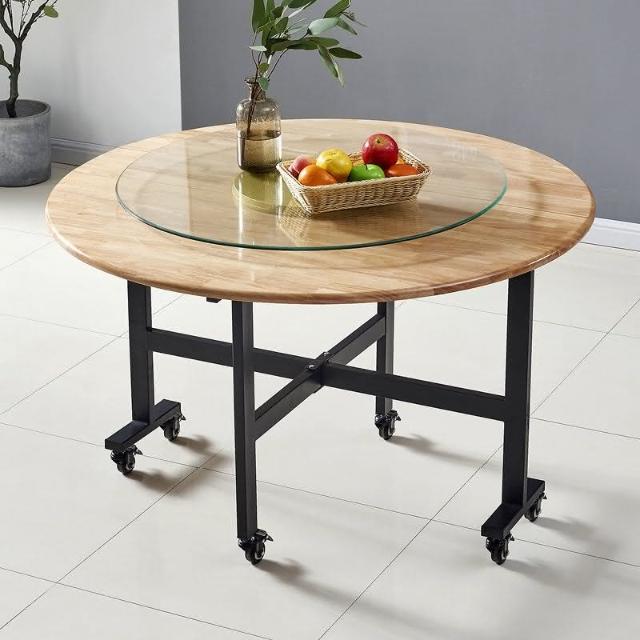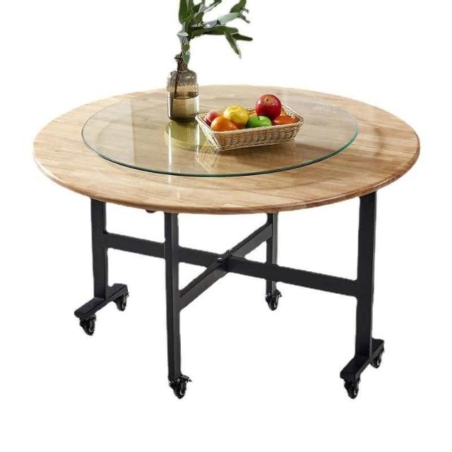 廠傢直銷 實木折疊桌移動大圓桌餐桌飯店喫飯多功能桌子圓形酒店小戶型傢用 免稅