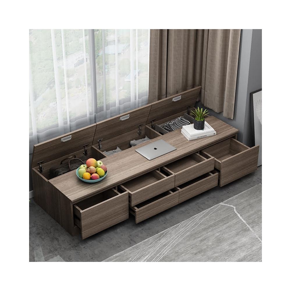 實木飄窗櫃可坐矮櫃窗檯櫃地櫃陽台收納柜子抽屜儲物櫃榻榻米定製 陽臺櫃 窗邊櫃 靠墻落地櫃 窗臺櫃子