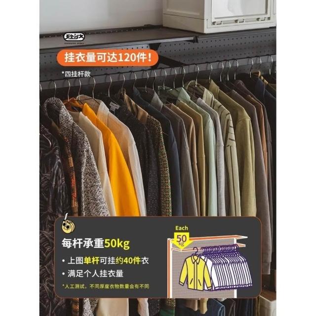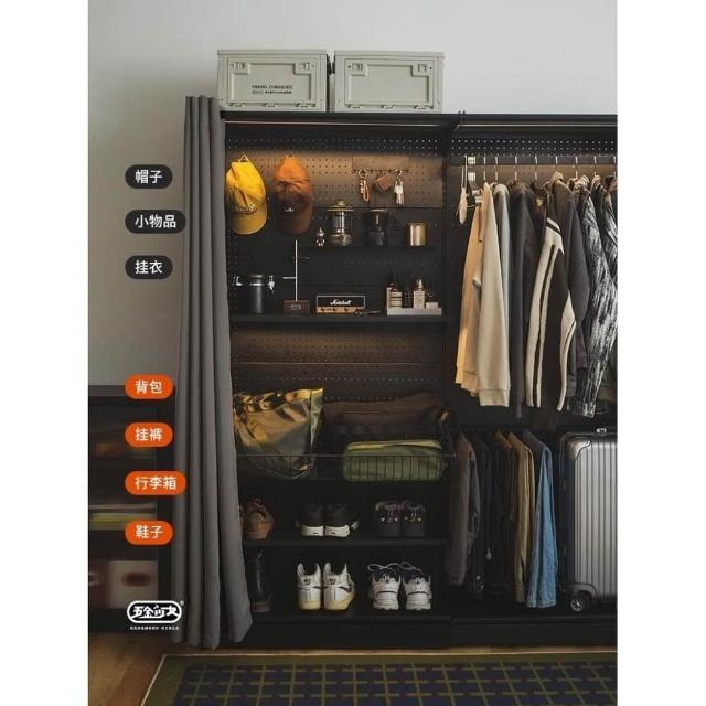 洞洞板簡易衣櫃家用卧室金屬貨架鐵藝開放式帶防塵簾衣櫥
