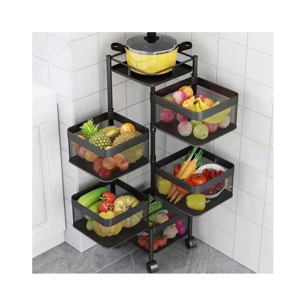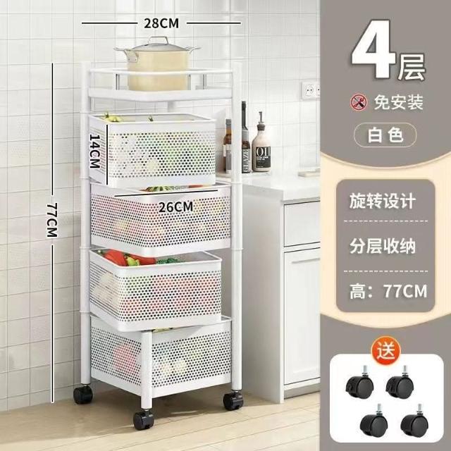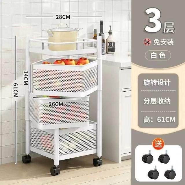 置物架 廚房置物架 廚房收納 層架 收納架 旋轉置物架 廚房收納架廚房蔬菜置物架多層落地圓形可旋轉菜籃子水果轉角瀝水水槽