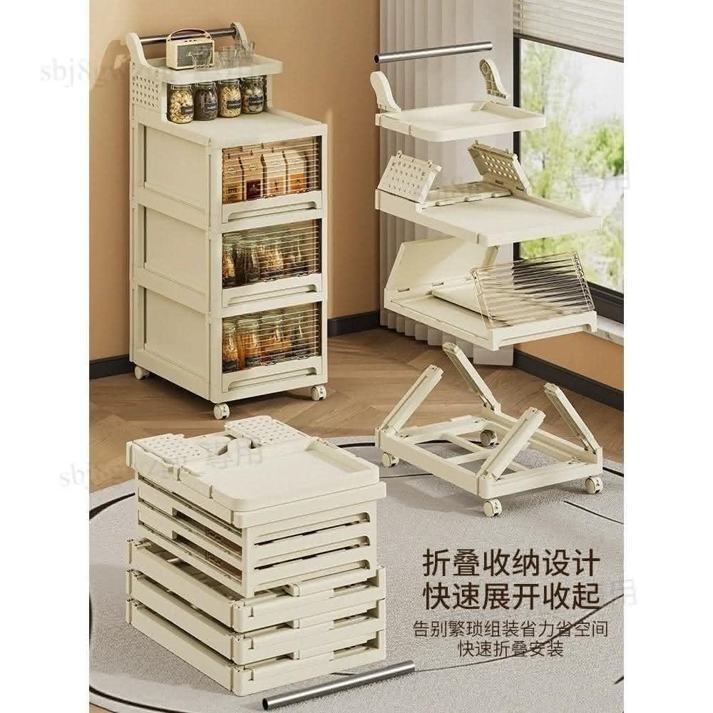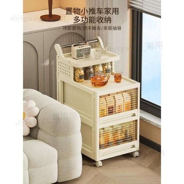 優選#客廳收納櫃雜物小推車置物架簡易摺疊塑料沙發旁家用移動抽屜式櫃