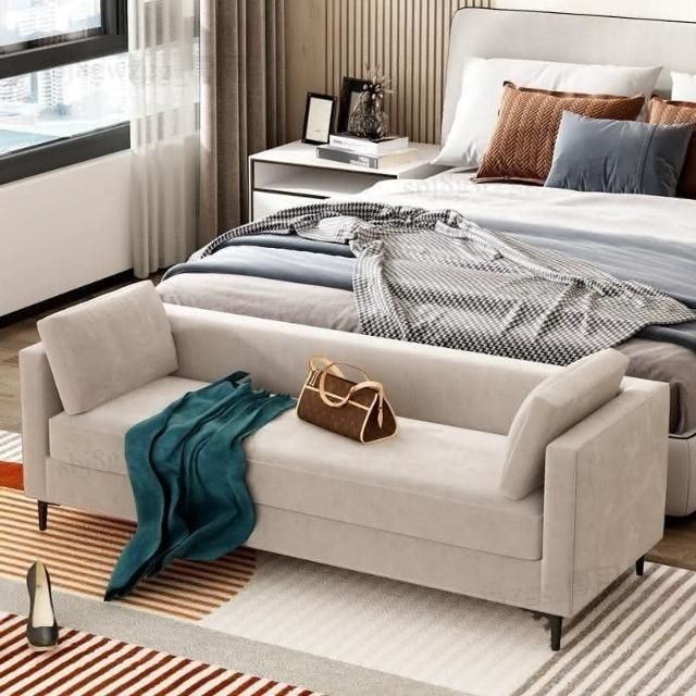 可開發票 輕奢床尾凳卧室科技布床尾沙發換鞋凳現代床前沙發凳長條靠背床凳