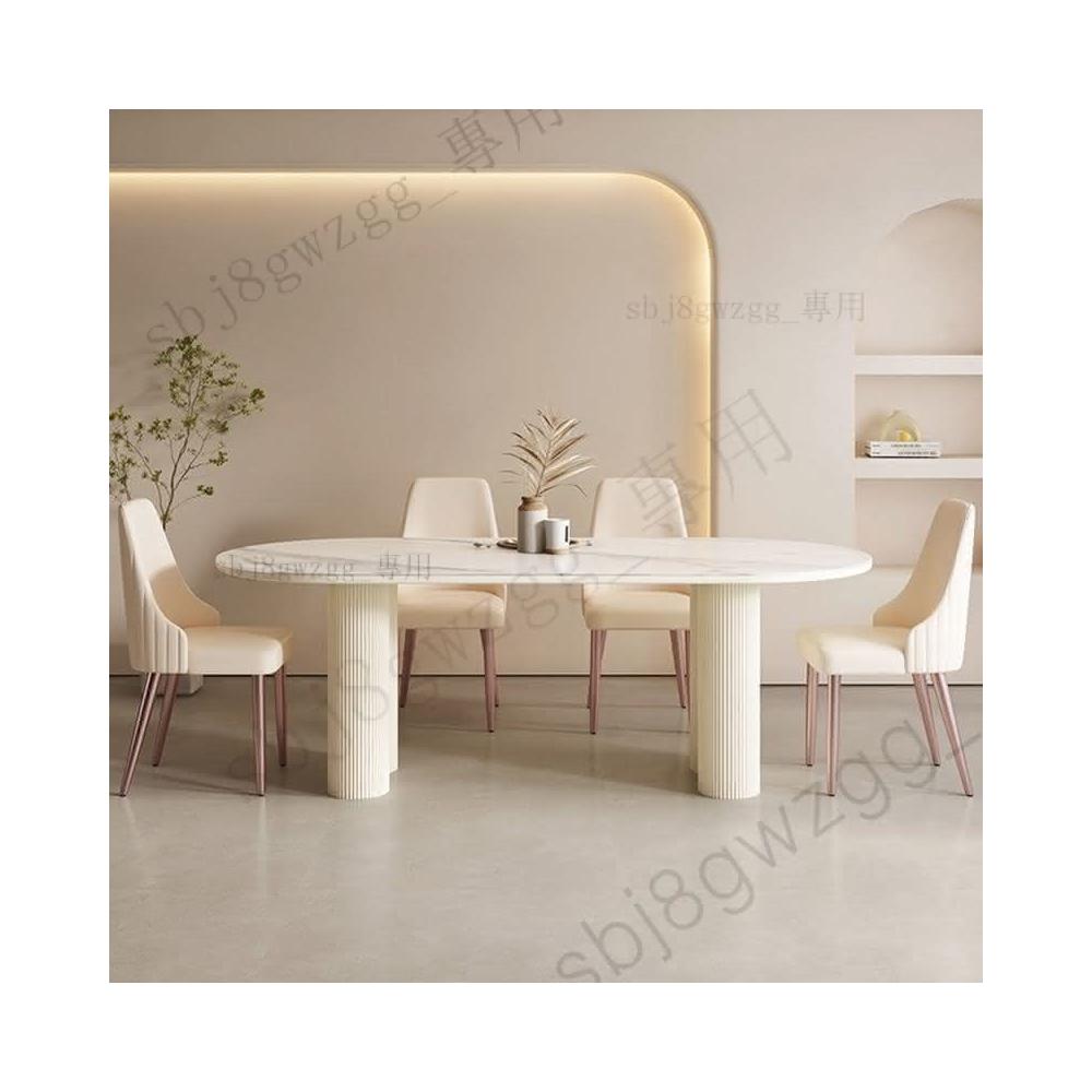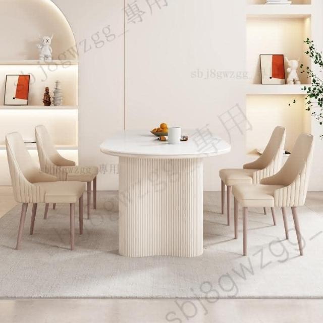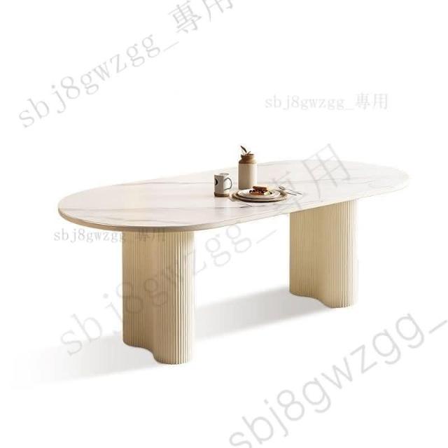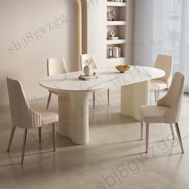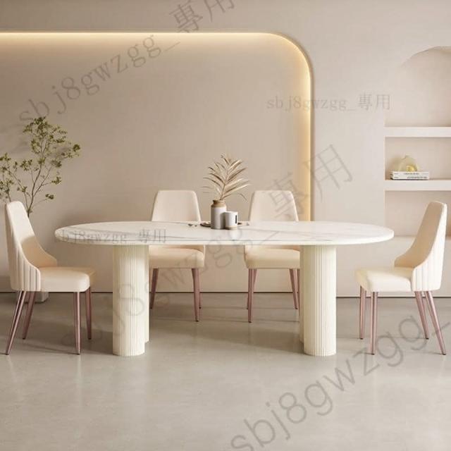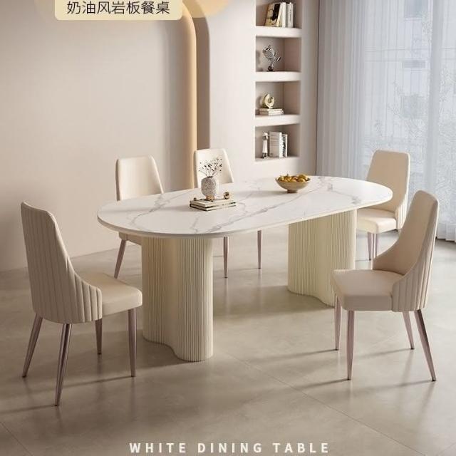 工廠直發 免運費 奶油風輕奢巖闆餐桌純白北歐網紅小戶型橢圓形餐桌傢用餐桌椅組閤