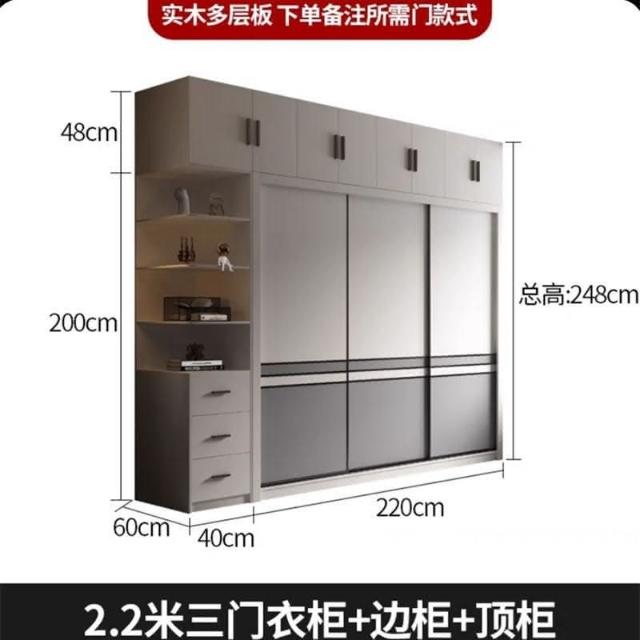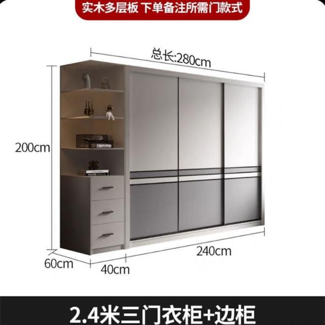 現代推拉門衣櫃傢用臥室用小戶型簡約實木多層闆櫃子組裝移門衣櫥