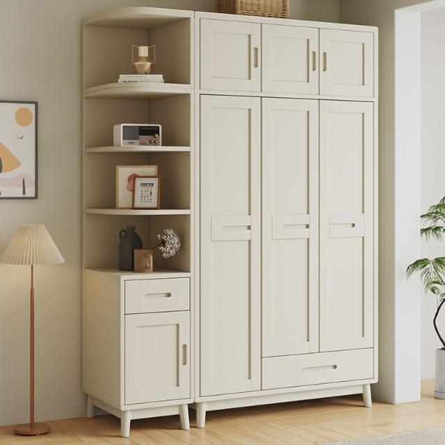 法式奶油風白色三四五門衣櫃實木現代簡約小戶型傢用臥室收納衣櫥