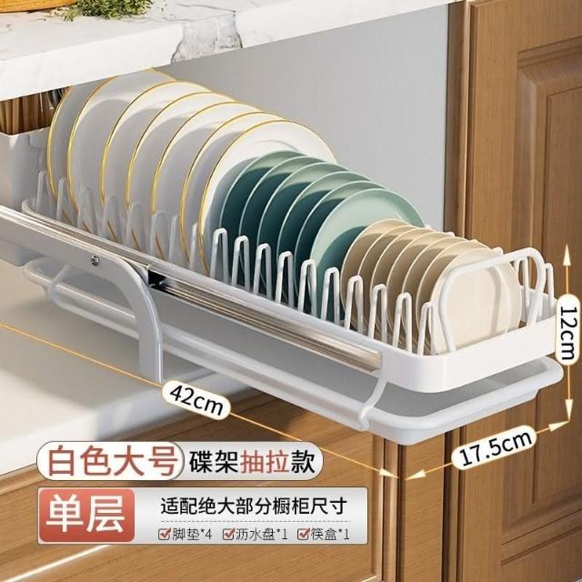 廚房碗碟收納架櫥櫃抽拉碗架拉籃抽屜式置物架臺麵碗盤盤子瀝水架