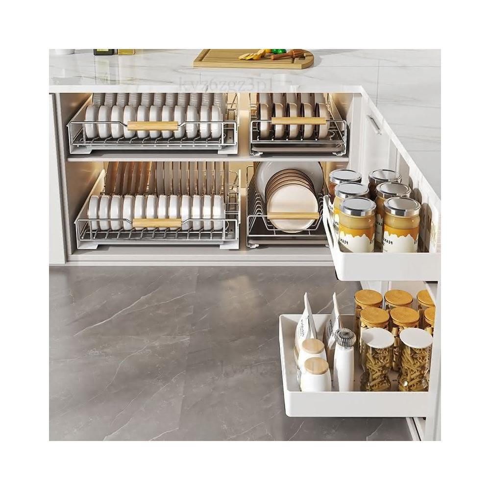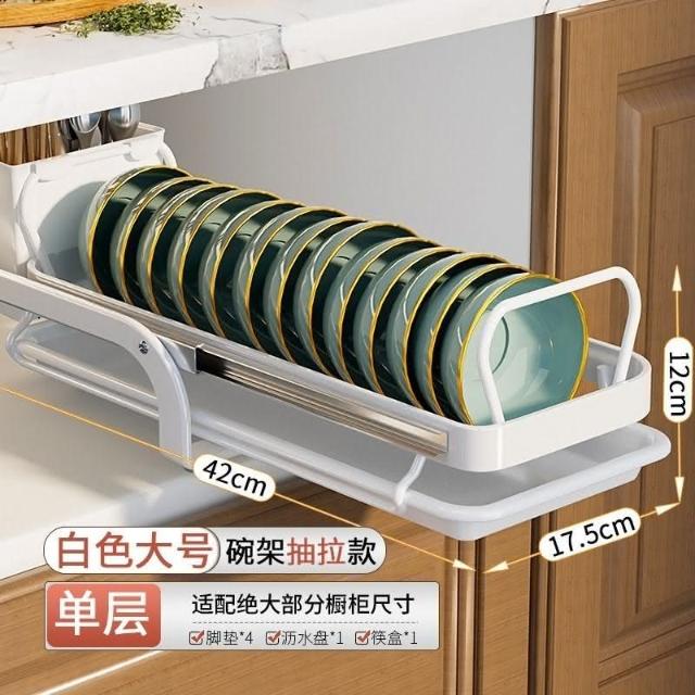 廚房碗碟收納架櫥櫃抽拉碗架拉籃抽屜式置物架臺麵碗盤盤子瀝水架