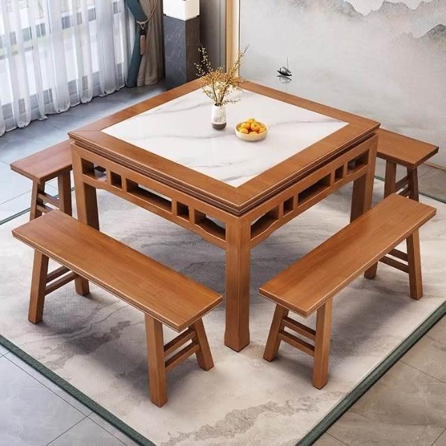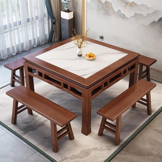八僊桌餐桌正方形實木中式巖闆小方桌飯店餐館家用喫飯四方桌子