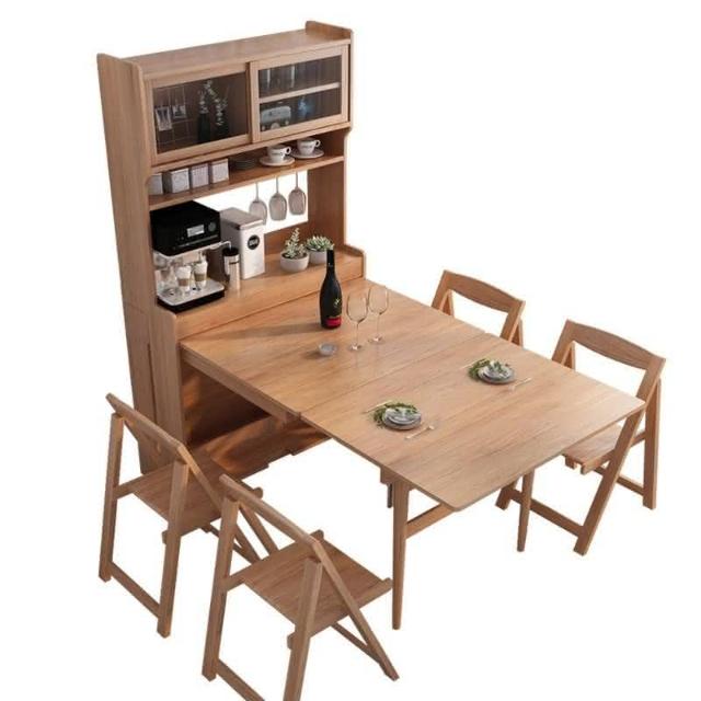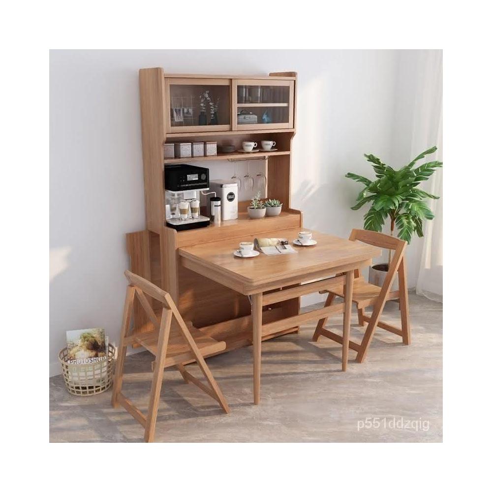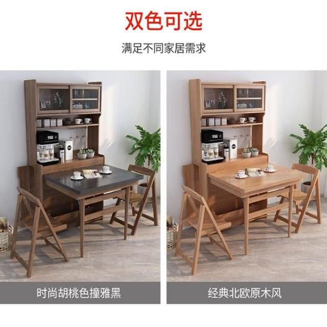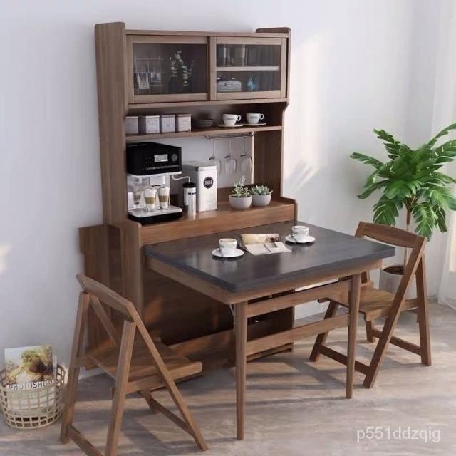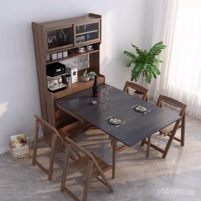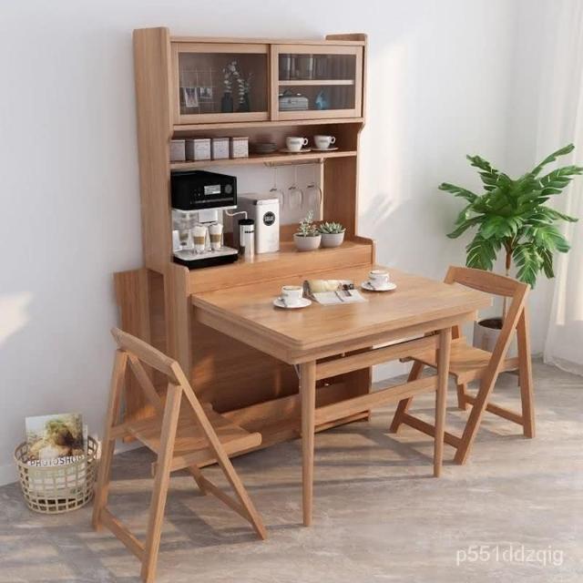 宅配到府 免運費 折疊餐桌餐邊櫃一體小戶型傢用伸縮餐臺收納靠墻餐廳櫃北歐風實木 餐桌 圓桌 折疊桌 飯桌 多功能桌椅