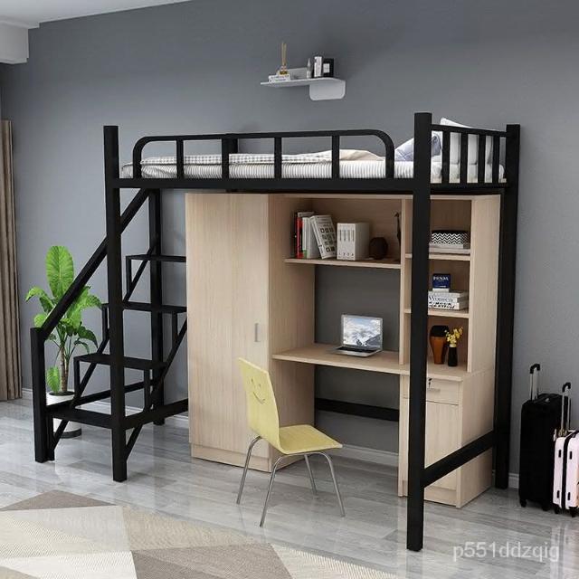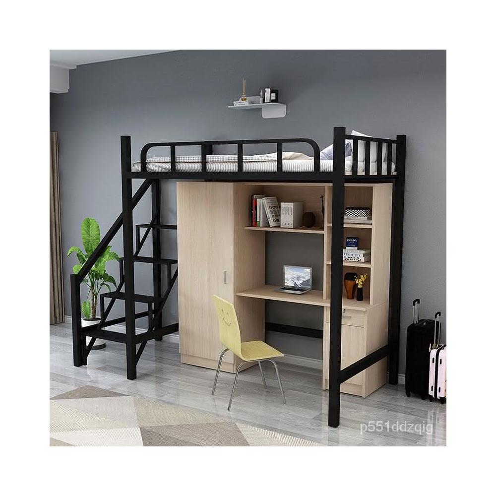 廠傢直銷 公寓床上床下桌大學生鐵藝衣櫃書桌一體員工寢室成人上床下櫃組閤 上下鋪 上下床 上床下桌 鐵藝床 7JOT