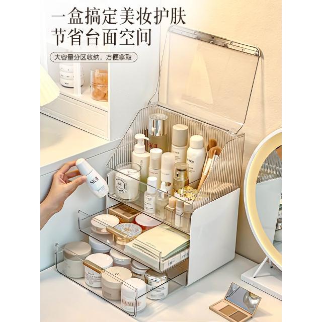 高级化妆品收纳盒梳妆台护肤品置物架亚克力整理盒桌面防尘化妆箱