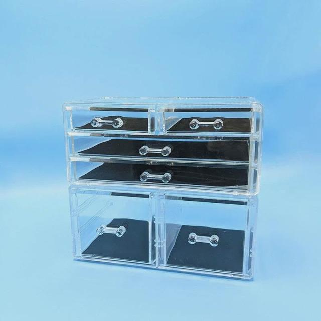 抽屉式化妆品收纳盒桌面梳妆台化妆镜护肤品置物架跨境口红化妆盒