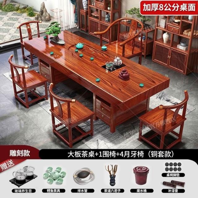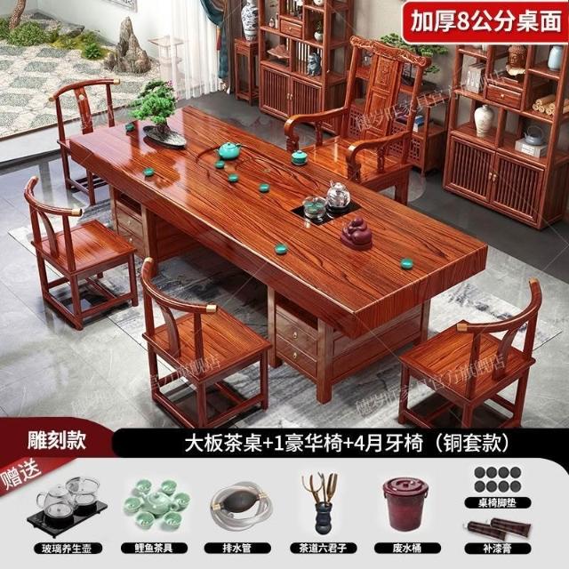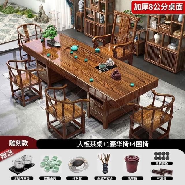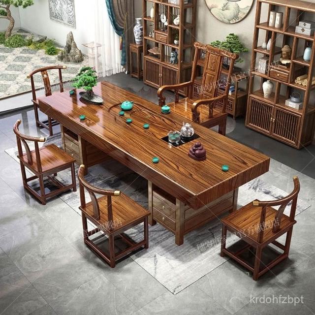 全臺可上門安裝 開統編 大闆實木茶桌椅組閤一桌五椅茶幾辦公室家用泡茶 IYDM