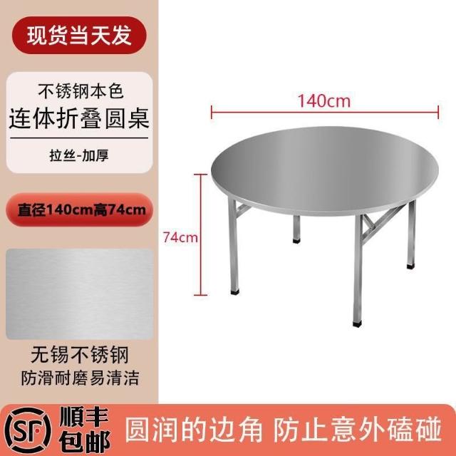 折疊桌304不銹鋼圓桌轉盤飯店大排檔流水席擺攤家用吃飯圓形餐桌