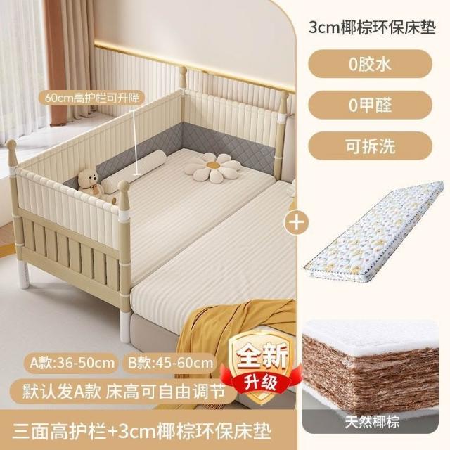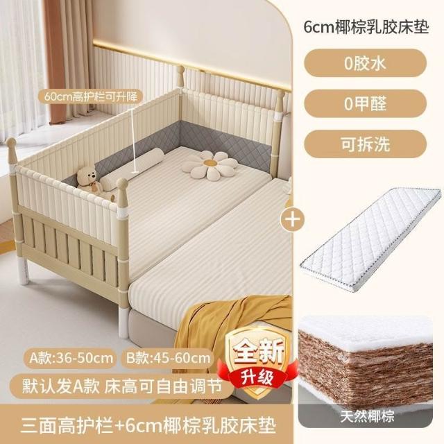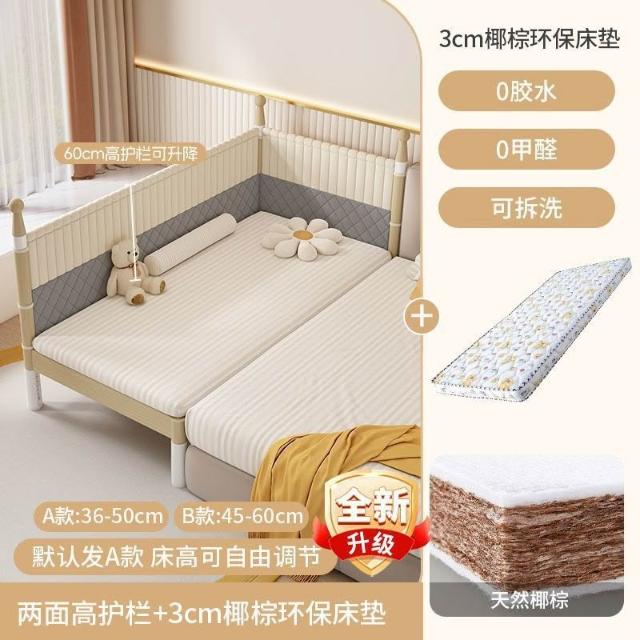 嬰兒拼接床加高護欄可升降帶床圍加寬大床邊實木寶寶單人床兒童床