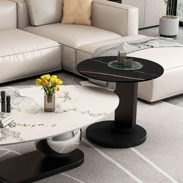 岩板橢圓形茶几輕奢現代客廳家用極簡小戶型新款
