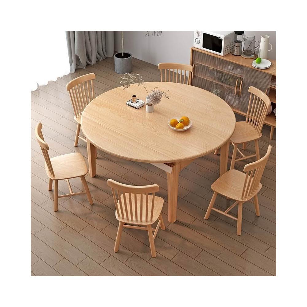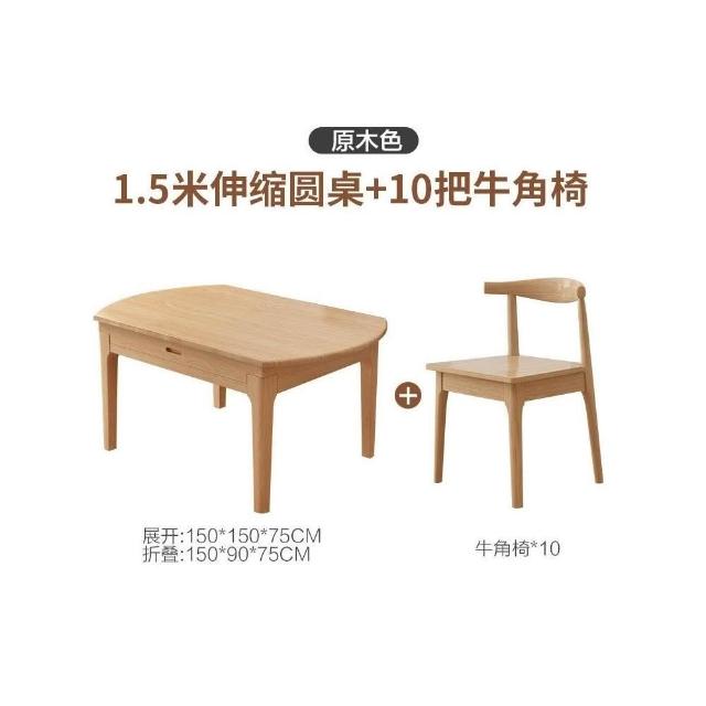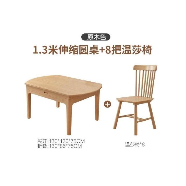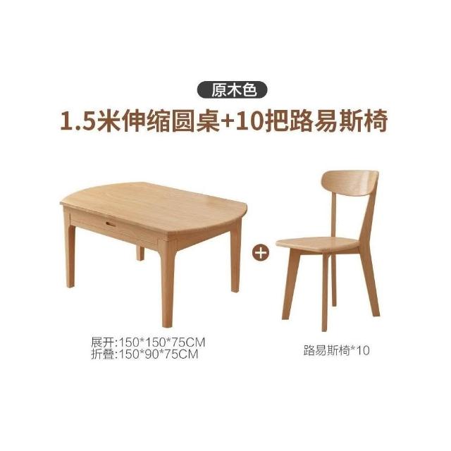 北歐全實木餐桌椅組合伸縮折疊餐桌小戶型多功能家用兩用可變圓桌