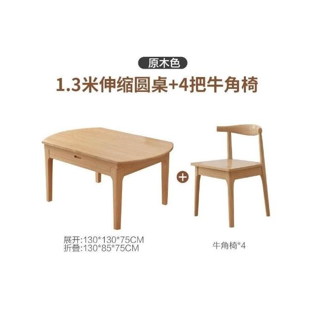 北歐全實木餐桌椅組合伸縮折疊餐桌小戶型多功能家用兩用可變圓桌
