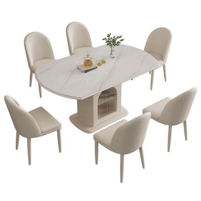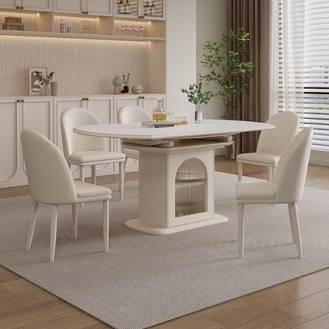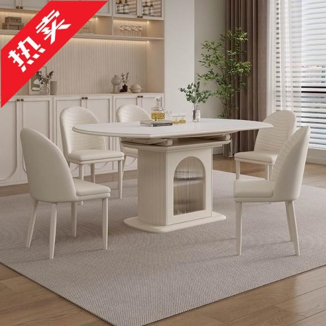 奶油風岩板岩板餐桌伸縮折疊儲物現代方圓簡約兩用家用小戶型飯桌