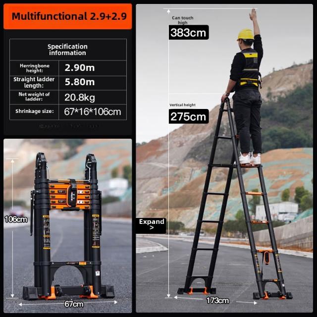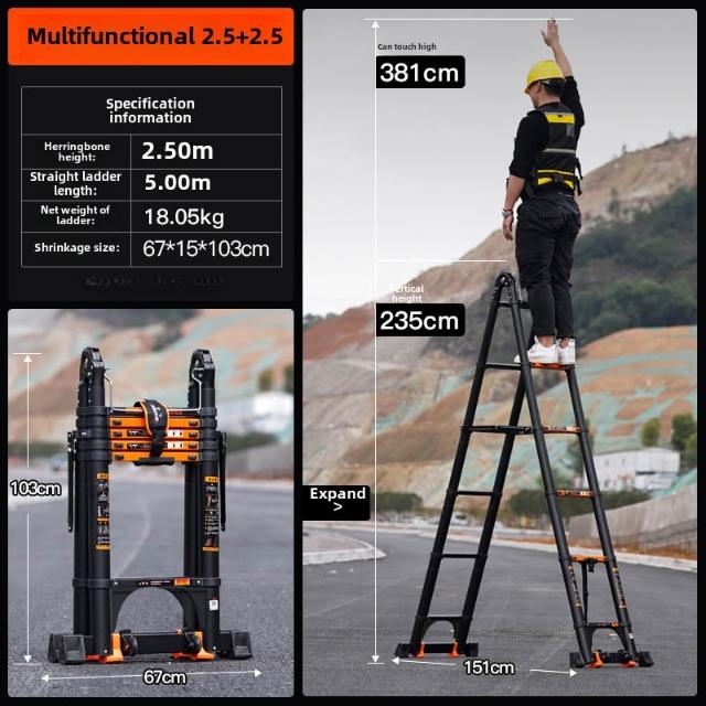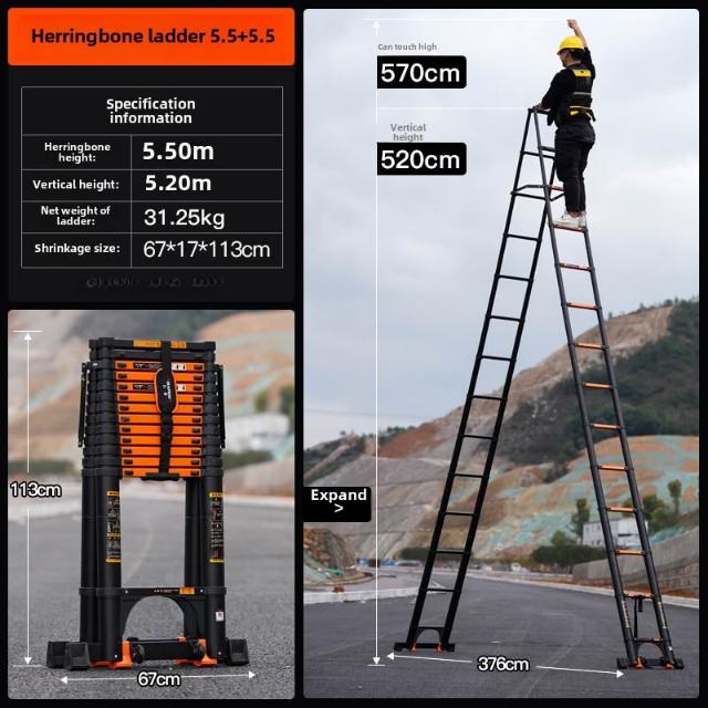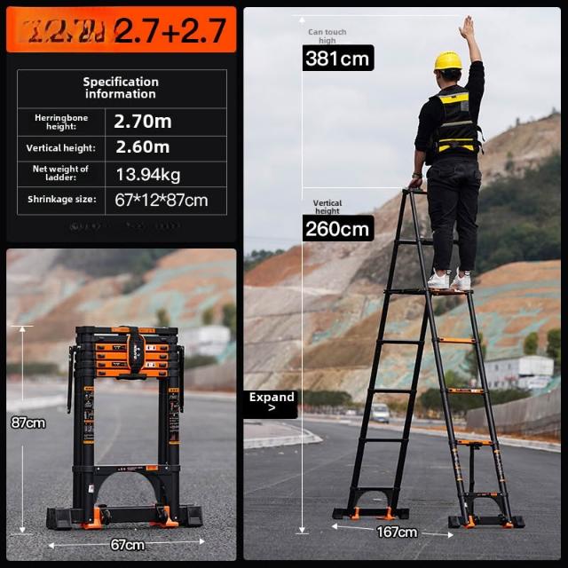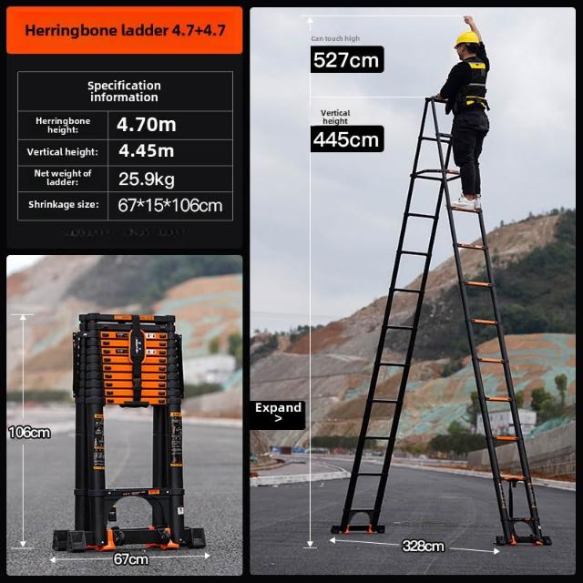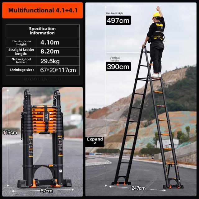 巴芬廠家批發鋁合金伸縮梯子人字梯加厚折疊梯多功能升降工程樓梯