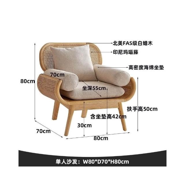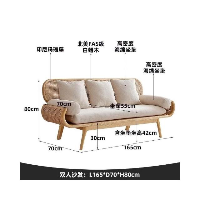 北歐原木複古藤編雙人沙發客廳傢用休閒藤椅三人小戶