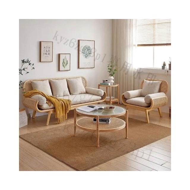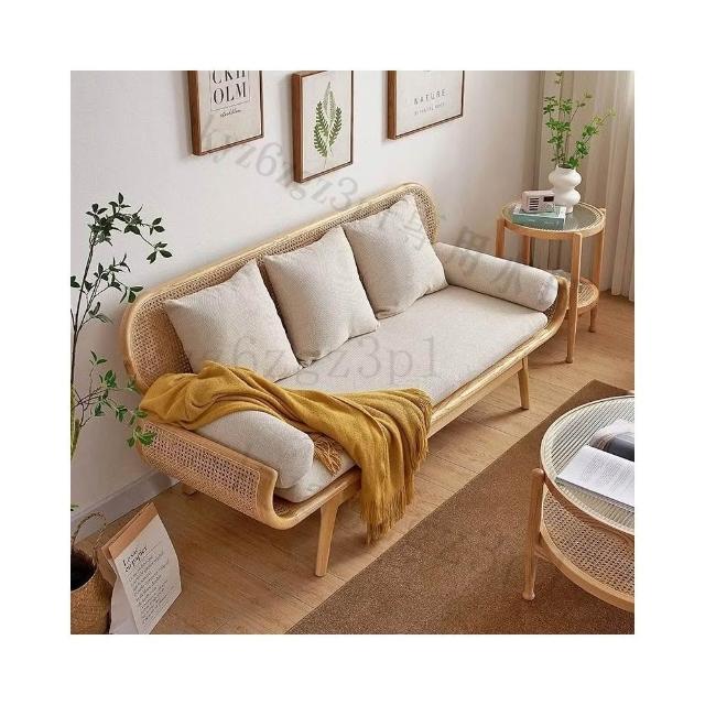 北歐原木複古藤編雙人沙發客廳傢用休閒藤椅三人小戶