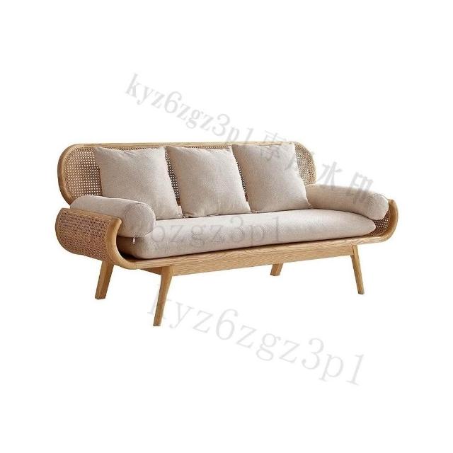 北歐原木複古藤編雙人沙發客廳傢用休閒藤椅三人小戶