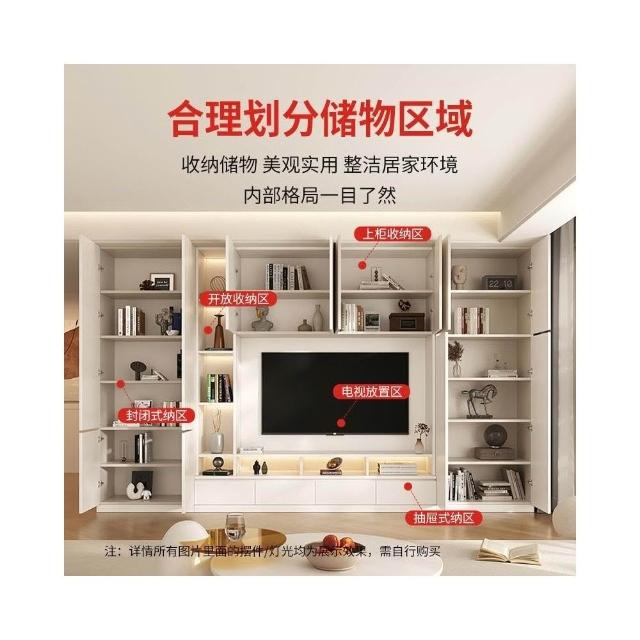 實木電視櫃現代簡約客廳2025新款電視背景牆櫃儲物櫃一體高櫃定制 系統電視櫃