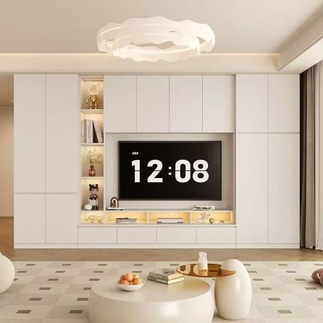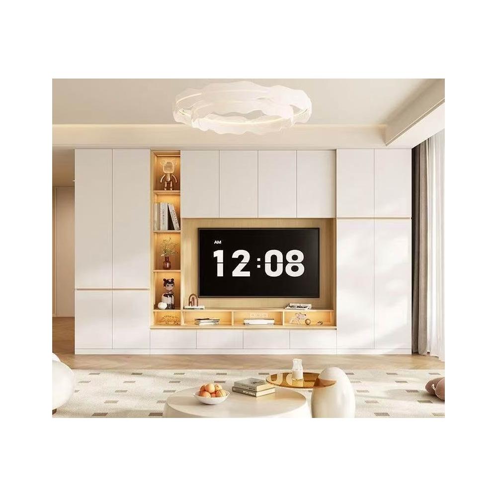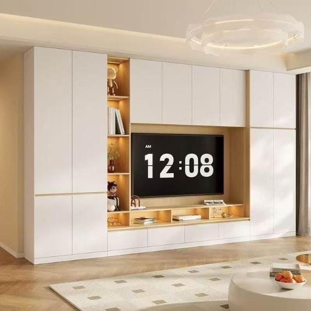 實木電視櫃現代簡約客廳2025新款電視背景牆櫃儲物櫃一體高櫃定制 系統電視櫃