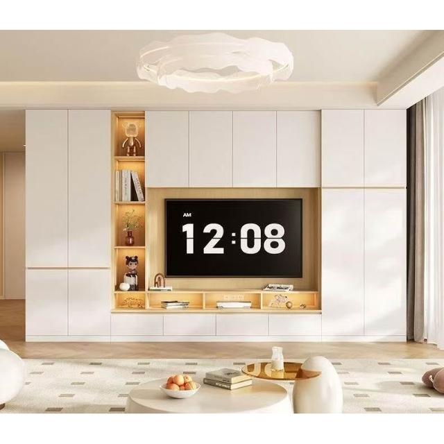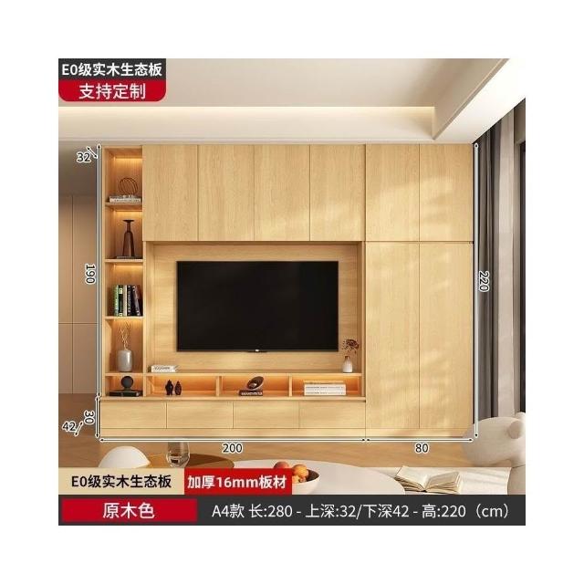 實木電視櫃現代簡約客廳2025新款電視背景牆櫃儲物櫃一體高櫃定制 系統電視櫃