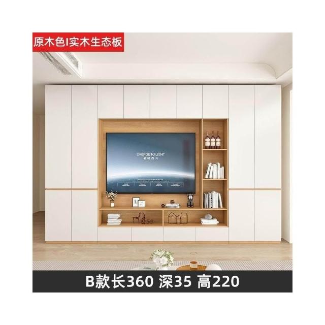 原木簡約家用客廳電視收納儲物一體櫃實木落地滿墻書櫃電視櫃落地 靠墻酒櫃卡其 胡桃