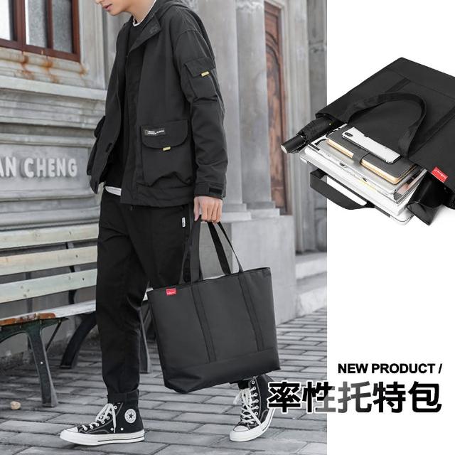 (工裝風托特包)公事包 筆電包 電腦包 潮流男包 超大容量 單肩包 黑色托特包 肩背兩用包