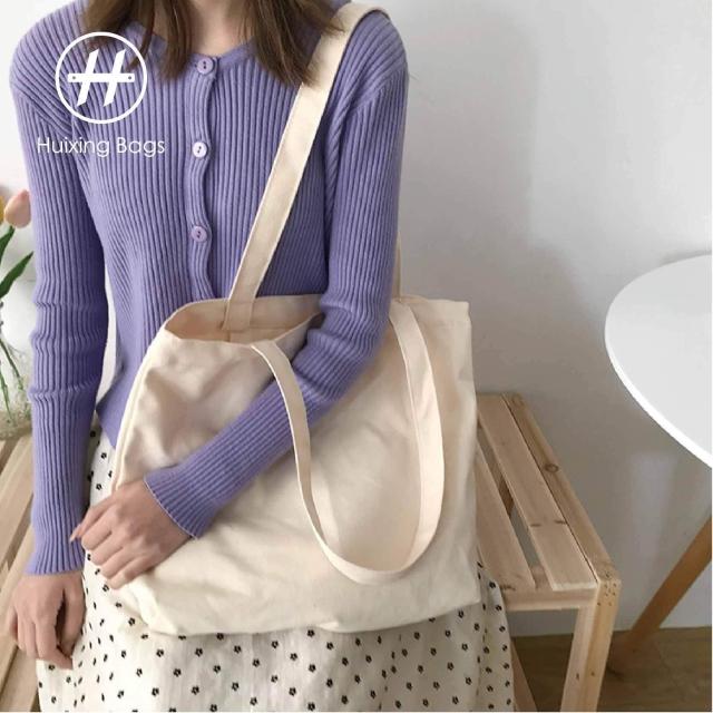 ( 韓系簡約風純色帆布托特包 ) 手提單肩兩用 大容量帆布手提袋 出國旅行包 旅遊手提包