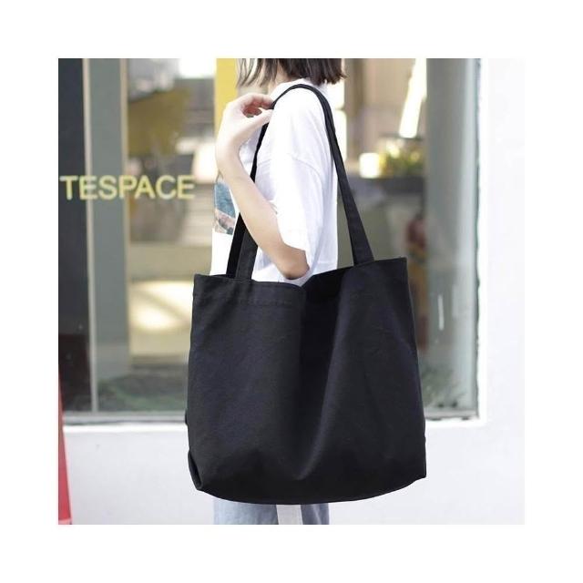 ( 韓系簡約風純色帆布托特包 ) 手提單肩兩用 大容量帆布手提袋 出國旅行包 旅遊手提包