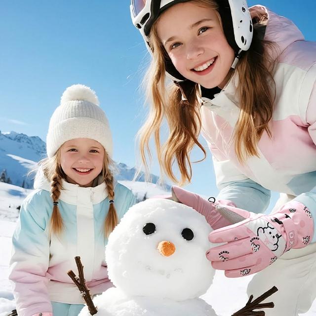 (兒童滑雪手套)防寒 防濕 運動手套 兒童手套 加厚防滑 防丟掛勾 束口手套 雪地手套