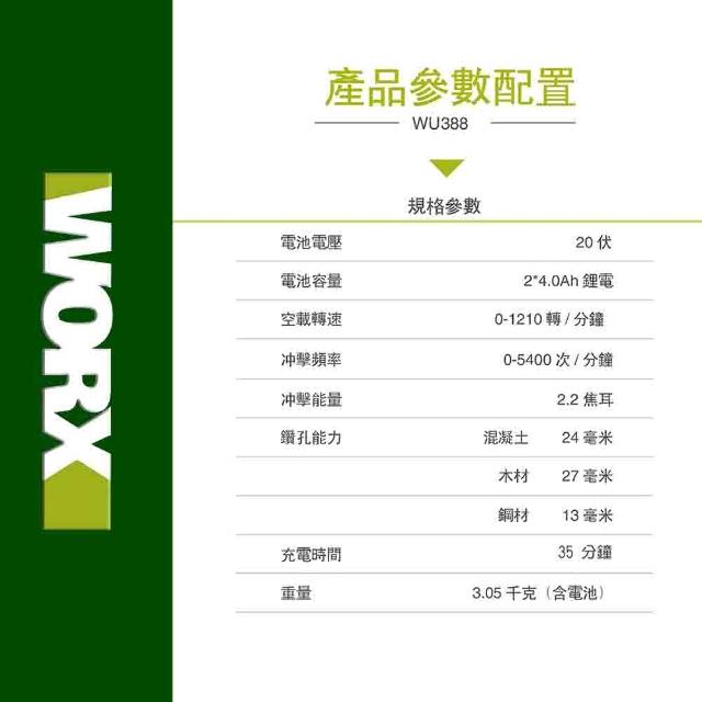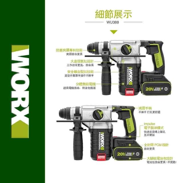 WORX 威克士20V 24mm 油壓鑽 電錘 錘鑽 鎚鑽 槌鑽 無刷鋰電鎚鑽 三用免出力 空機 WU388.9