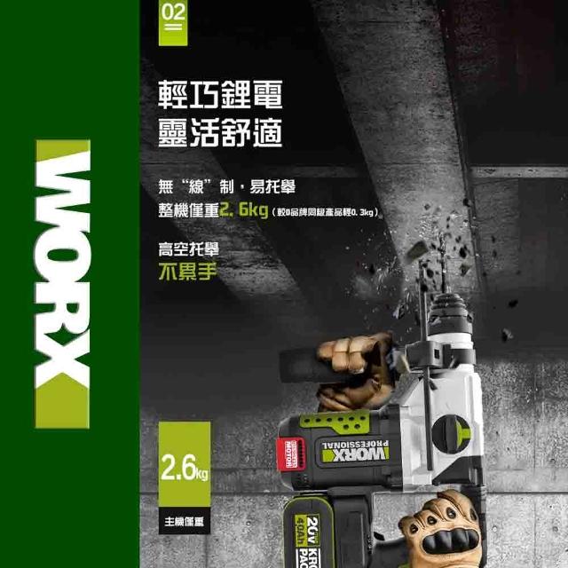 WORX 威克士20V 26mm 電鑽 三用槌鑽 無刷鋰電電錘 免出力 空機 WU389.9