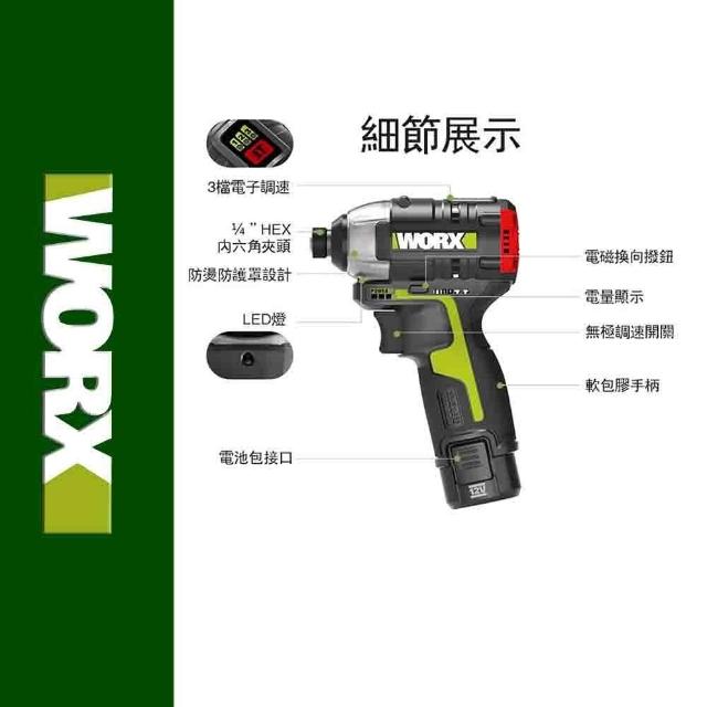 WORX 威克士12V 起子機 電動起子 衝擊起子 無刷衝擊起子 電動起子機 鋰電起子機 無刷鋰電衝擊起子 WU132.1單電池