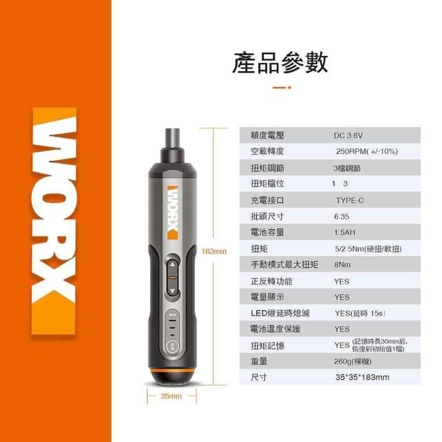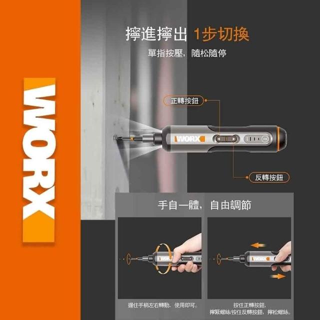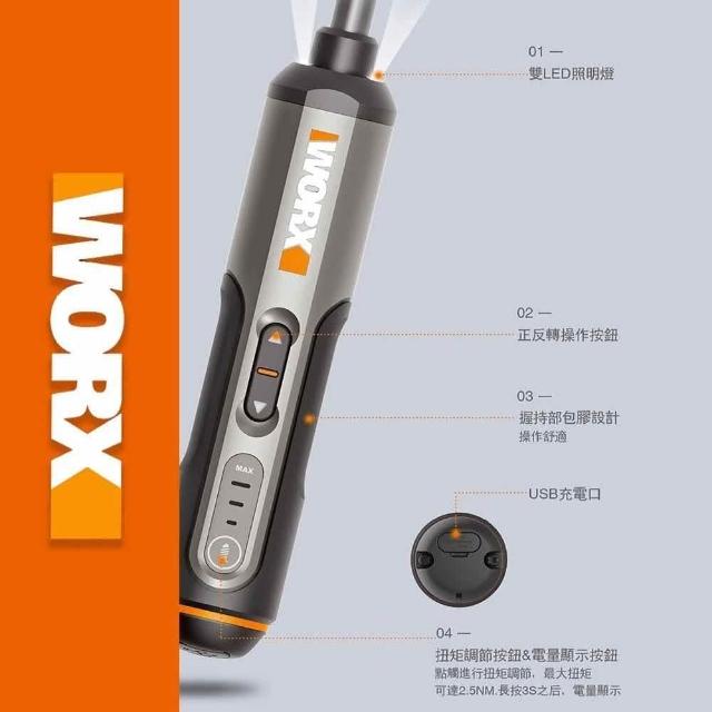 WORX 威克士4V 小型迷你起子 電動起子機 電動鎖鎖傢俱螺絲 鋰電迷你電動起子機 精密作業 LED燈 扭力調節 電量顯示 WX240