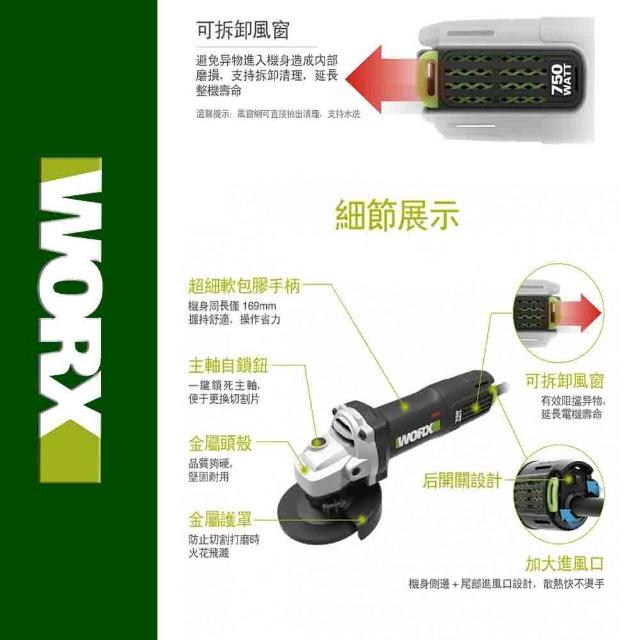 WORX 威克士110V 100mm 750w 磨切機 砂輪機 角磨機 研磨機 平面砂輪機 平面 手持 好握細柄設計 WU810L