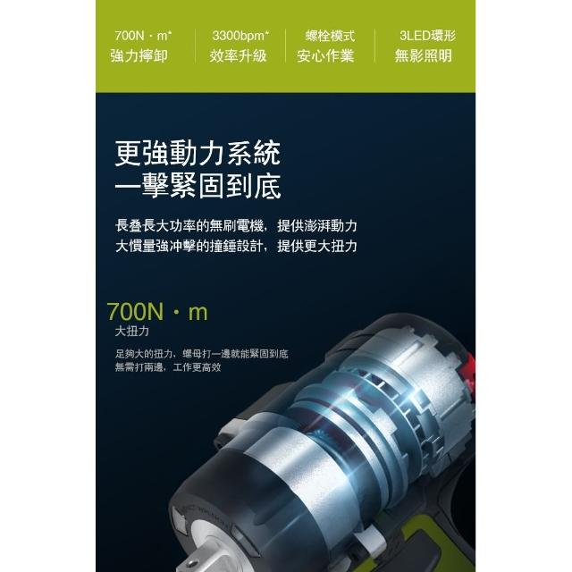 WORX 威克士20V 700Nm 扳手 電動扳手 電鑽 無刷鋰電衝擊扳手 螺栓模式 雙5.0電池 WU270.3