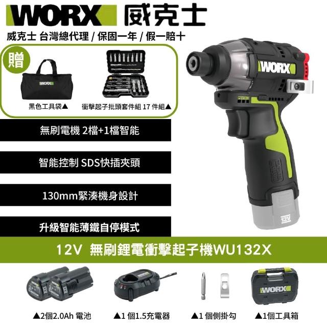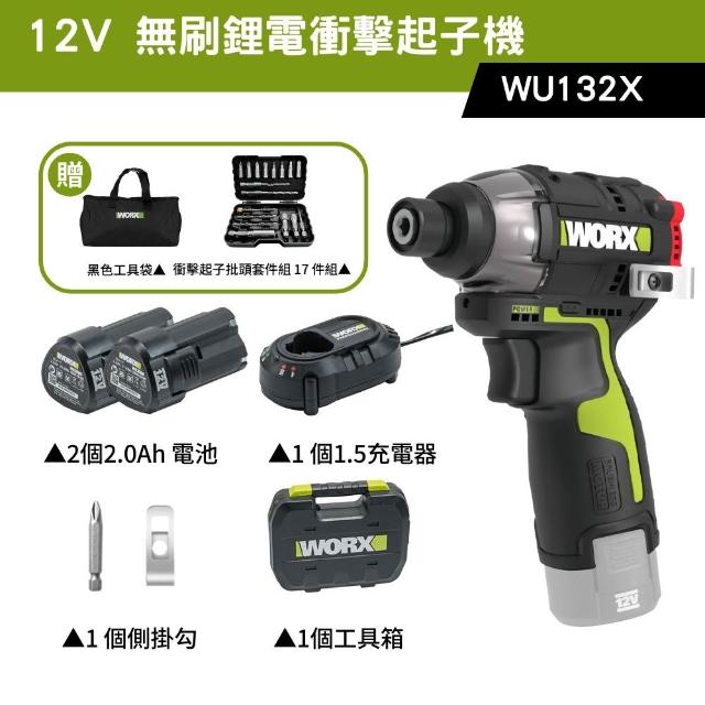 WORX 威克士12V 160Nm 衝擊起子 電動起子機 衝擊鑽 衝擊電鑽 無刷鋰電衝擊起子機 雙2.0電池 WU132X