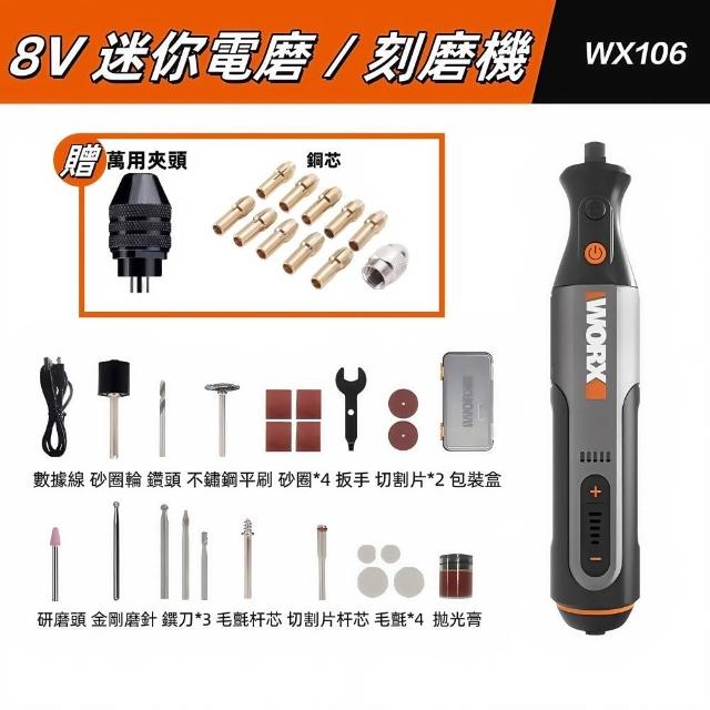 WORX 威克士8V 迷你鋰電刻磨機 家用電鑽 無線電磨機 拋光 打磨機 切割機 無線刻磨機 雕刻機 打磨 拋光 雕刻WX106