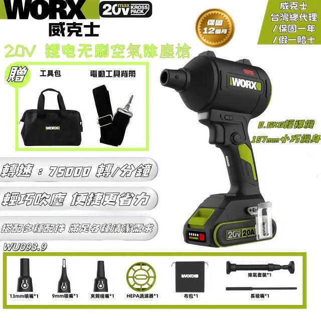 WORX 威克士20V 吹塵槍 無線吹風機 大風量吹風機 空氣槍 充電式吹風機 手持式吹灰機 無刷渦輪鼓風機 渦輪吹塵槍 暴力吹風機 空機 颶風除塵 強勁動力WU093.9